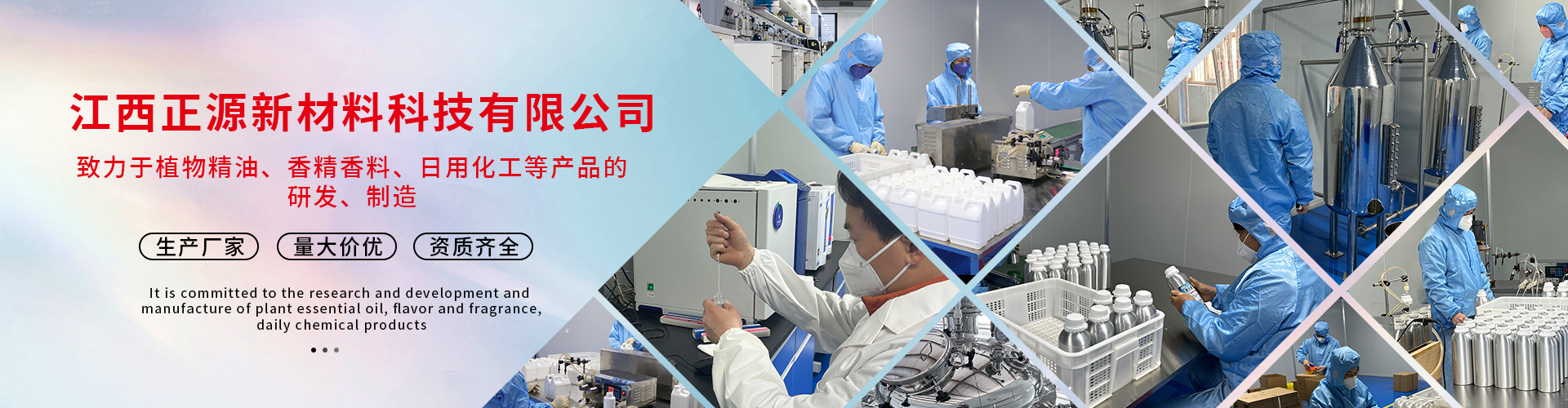 我公司多年來一直致力于日化化工、香料化工產(chǎn)品的研發(fā),制造。公司長期以國內(nèi)多所高等院校保持技術(shù)合作。現(xiàn)有員工50多人,其中高等級(jí)技術(shù)人員10人。廠房占地面積20畝,其中標(biāo)準(zhǔn)化生產(chǎn)車間1500多平米,倉儲(chǔ)、辦公1000多平米。化驗(yàn)室配有高精良的檢測儀器和設(shè)備。